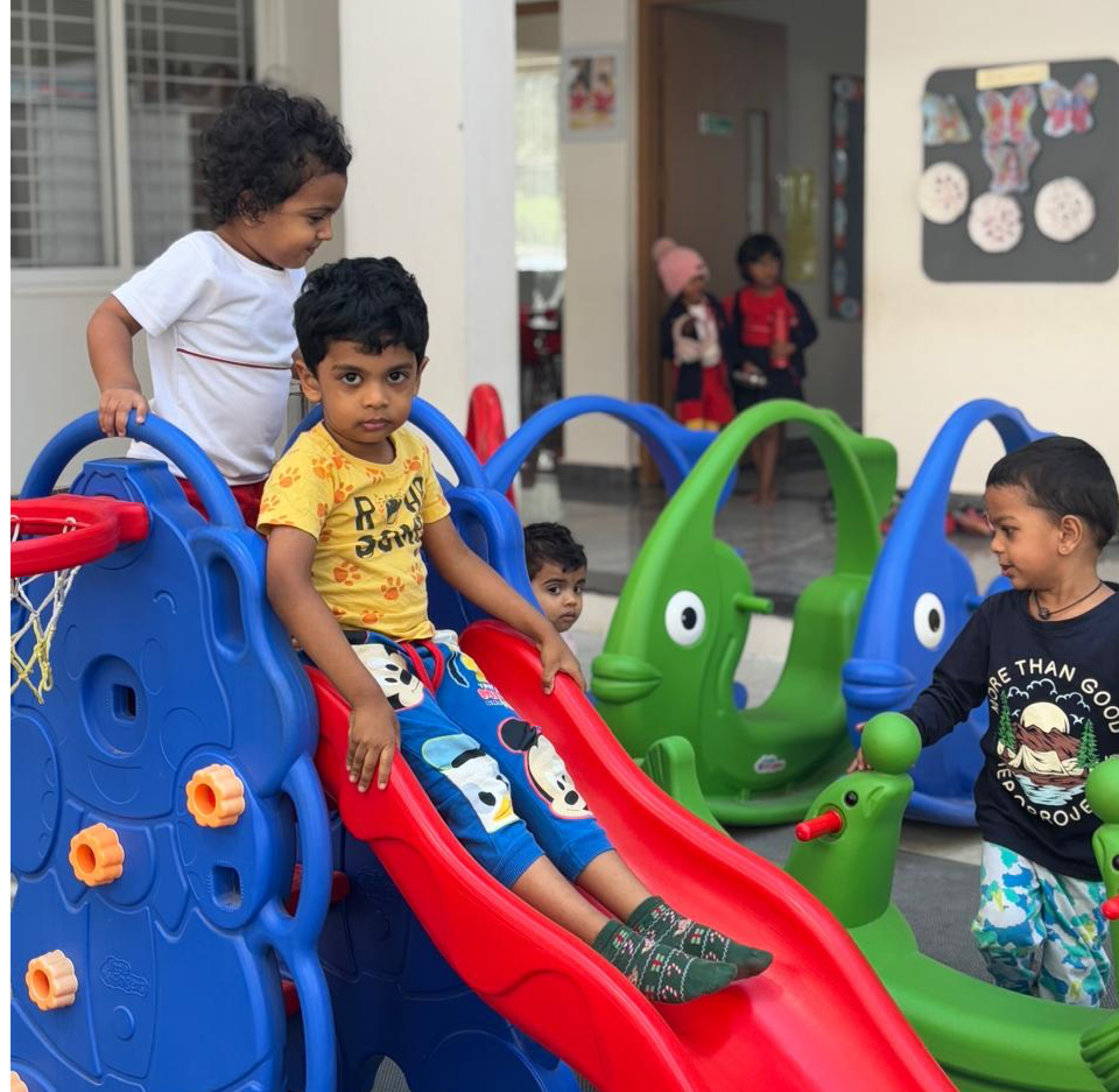 Utilizing the Maple Bear Global Schools curriculum, Sumedha's daycare offers children ages 6 weeks to 24 months flexible schedules, nutritious meals, and loving routines that promote emotional growth, stable attachments, and enriching early experiences in a caring environment.